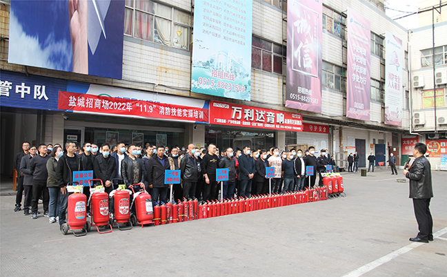 11月9日下午,鹽城招商場(chǎng)組織開(kāi)展“119”消防宣傳月消防技能實(shí)操演練活動(dòng)。市場(chǎng)相關(guān)部門(mén)、駐場(chǎng)城管中隊、義務(wù)消防隊員、市場(chǎng)保潔員、商戶(hù)代表共200余人參加活動(dòng)。