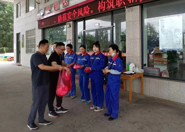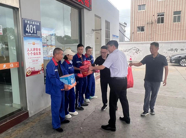 活動(dòng)中,物資集團和新倫石化公司負責人一行來(lái)到大徐、金達加油站,為一線(xiàn)職工送上防暑降溫物品,關(guān)切詢(xún)問(wèn)大家的日常工作情況,叮囑他們在高溫期間要合理安排作業(yè)時(shí)間,注重勞逸結合,做好個(gè)人防護。隨后,物資集團負責人詳細了解加油站經(jīng)營(yíng)銷(xiāo)售情況,并要求現場(chǎng)管理人員切實(shí)做好防暑降溫措施和防汛工作,加強對加油機、油罐區、配電室等設備設施的日常巡查,及時(shí)消除安全隱患,營(yíng)造平安穩定的工作環(huán)境。