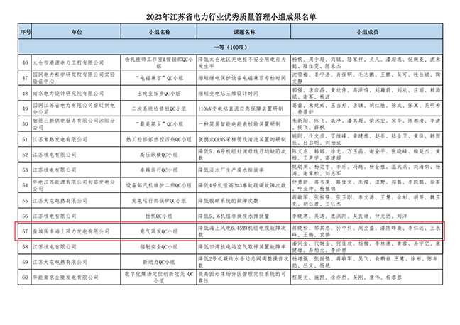 日前,在江蘇省電力行業(yè)協(xié)會(huì )主辦的2023年度QC成果發(fā)布會(huì )上,鹽城國豐公司QC小組“降低海上風(fēng)電6.45MW機組電纜故障次數”這一課題,經(jīng)過(guò)資料評審、現場(chǎng)發(fā)布等多個(gè)環(huán)節,榮獲成果一等獎。