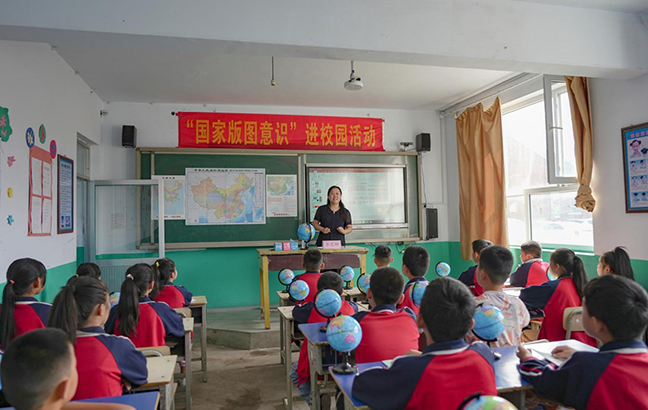 當日上午,河北省自然資源廳、河北省測繪學(xué)會(huì )、河北中色測繪公司相關(guān)同志共同走進(jìn)承德市隆化縣柵子村小學(xué),開(kāi)展“國家版圖意識”進(jìn)校園活動(dòng),為同學(xué)們送去了一堂有趣的國家版圖知識專(zhuān)題課?;顒?dòng)現場(chǎng),石家莊鐵路職業(yè)技術(shù)學(xué)院李笑娜老師從地圖歷史、地圖規范、地理信息安全等方面,深入淺出地向同學(xué)們講解了國家版圖相關(guān)知識,以及地球儀的正確使用方法,介紹了新版標準地圖的詳細情況。中色測繪公司向該小學(xué)和村委會(huì )贈送了國家版圖知識宣傳冊、地圖冊、地球儀以及文體學(xué)習用品,鼓勵同學(xué)們積極學(xué)習版圖知識,進(jìn)一步樹(shù)立國家版圖意識,自覺(jué)維護國家版圖尊嚴。