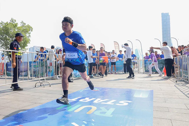 上午8點(diǎn)55分,選手們在健身教練帶領(lǐng)下跳起了互動(dòng)熱身舞蹈,現場(chǎng)氛圍被點(diǎn)燃。“3、2、1,開(kāi)跑!”9點(diǎn)整,開(kāi)幕式現場(chǎng)領(lǐng)導嘉賓共同鳴槍?zhuān)x手們在志愿者的引導下,如離弦之箭般,依次沖進(jìn)鹽城國貿中心(先鋒中心)大樓的樓道,開(kāi)啟了這場(chǎng)垂直向上的征程?!洱堯v虎躍》《春華秋實(shí)》《戰馬奔騰》《月亮代表我的心》……在蘇科民族管弦樂(lè )團老師們的專(zhuān)業(yè)演奏下,開(kāi)跑現場(chǎng)氛圍緊張而溫馨。
