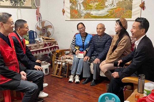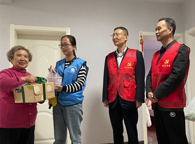 活動(dòng)中,黨員志愿者們來(lái)到桂苑社區華佳梅苑小區,同社區工作人員一起為老黨員們送去精心準備的食品和書(shū)籍,并與他們拉家常,傾聽(tīng)他們的心聲,關(guān)切詢(xún)問(wèn)他們的日常起居、身體健康情況,并叮囑老人們在換季時(shí)節注意天氣變化,及時(shí)增添衣物,保重身體、安度晚年。一聲問(wèn)候,幾句細語(yǔ),洋溢著(zhù)濃濃的情意,讓老黨員們深切感受到黨組織的關(guān)懷與溫暖。
