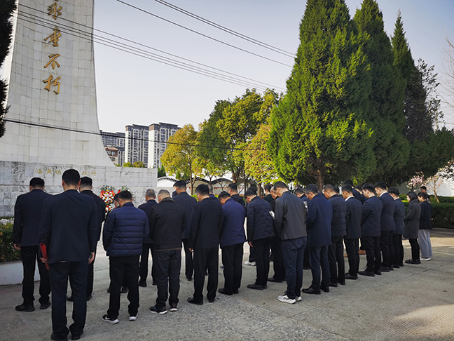 3月29日下午,物資集團黨總支、類(lèi)金融公司黨總支組織黨員代表來(lái)到潘黃烈士陵園開(kāi)展“緬懷革命烈士 弘揚愛(ài)國精神”祭掃活動(dòng)。在革命烈士紀念碑前,全體黨員靜默肅立、敬獻花束,表達對英烈的崇高敬意和無(wú)限哀思。大家紛紛表示,要銘記歷史、堅定信念,珍惜這來(lái)之不易的幸福生活,繼承英烈遺志,立足本職崗位,主動(dòng)擔當作為,把對英烈的崇敬之情轉化為強大的工作動(dòng)力,用自己的實(shí)際行動(dòng)為集團高質(zhì)量發(fā)展貢獻力量。
